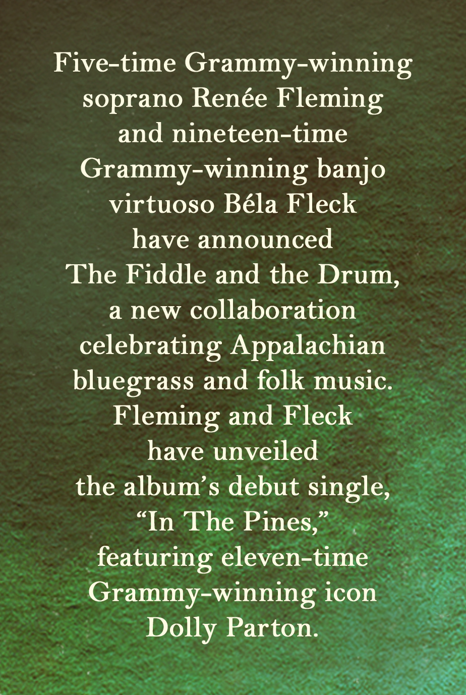 RENÉE FLEMING AND BÉLA FLECK TO RELEASE NEW ALBUM THE FIDDLE AND THE DRUM, AVAILABLE MAY 29